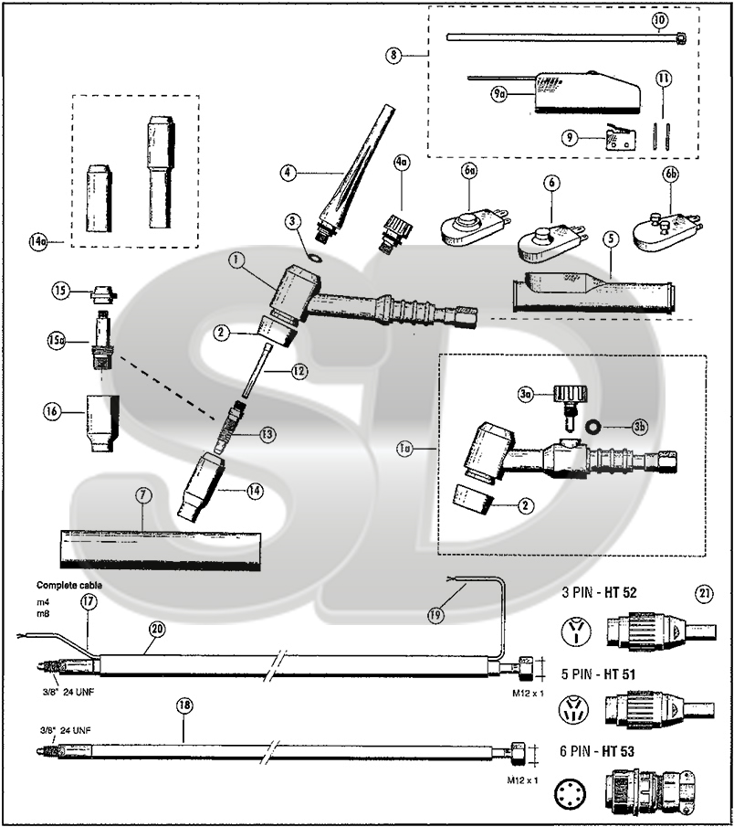 La antorcha TIG Euro SoltiG 17 aporta una ciclo de trabajo del 100%, entregando 150A en continua y 120A en alterna. Además está refrigerada por aire, con grosores de hilo de 0.5mm a 2.4mm, disponible en mangueras de 4, 8 y 12 metros. Tenemos stock de todos los componentes y repuestos del despiece de la antorcha.