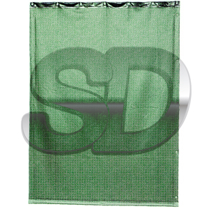 Cortina para soldadura con bordes reforzados de 5 cm alrededor de toda la cortina, provistas de 7 ojales reforzados en parte superior y corchetes de unión en ambos lados, suministradas con 7 ganchos de suspensión. Color verde oscuro/mate, elimina luz visible, apto para separaciones de puestos de soldadura evitando interferencias. Realizada sobre una base de PVC, proporciona protección contra la luz azul y la radiacción ultravioleta. Ofrece además la máxima seguridad en cuanto a refractancia y resistencia a la ignición. Disponible en medidas de 160X140cm y 200X140cm.