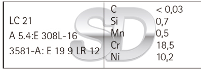EUROTROD LC21 es un electrodo para soldadura de aceros inoxidables, con revestimiento de rutilo de bajo contenido de carbono para soldadura de aceros inoxidables tipo ALSI 304, 304L. Buena resistencia a la corrosión intergranular hasta 350ºC.