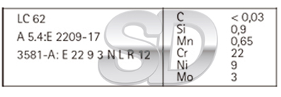 EUROTROD LC62 es un electrodo para la soldadura de aceros inoxidables, con revestimiento de rutilo para soldadura de aceros Duplex 22%Cr, estructura de tipo austenítica-ferrítica. Buenaa resistencia a la oxidación, corrosión y fisuración bajo tensión. Esta disponible en medidas de 2.5X300.