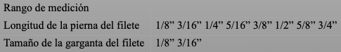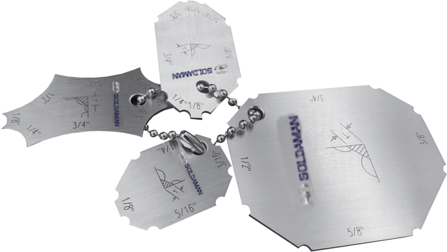 Es un conjunto de 4 piezas fabricadas en acero inoxidable, diseñado para realizar mediciones rápidas y precisas de soldaduras de filete. Este instrumento compacto y fácil de transportar es ideal para soldadores que necesiten verificar el tamaño de los filetes de soldadura durante la inspección previa.