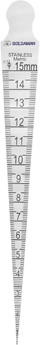 Es un medidor diseñado para medir la separación entre elementos que serán unidos mediante soldadura. Este instrumento permite evaluar con precisión el espacio entre las piezas, asegurando que la distancia sea la adecuada para una correcta unión soldada.