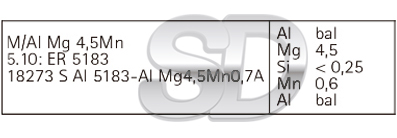 Hilo sólido para soldadura de aleaciones de aluminio-magnesio como AlMg/ AlMg 4.5Mn. Buena resistencia a la tracción. Usado en particular en estructuras que combinan resistencia mecánica con resistencia a la corrosión del agua del mar. Está disponible en bobinas de 2Kg y 5Kg, en las medidas de 0,8mm, 1,0mm, y 1,2mm.