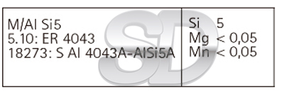 Hilo sólido indicado para la soldadura de aluminio con un máximo del 2% de elementos de aleación y para fundiciones de hasta 7% Si. Excelentes características de fluidez. Está disponible en medidas de 0,8mm, 1,0mm, 1,2mm y 1,6mm en bobinas de 5Kg; y en medidas de 0,8mm y 1,0mm en bobinas de 2Kg.