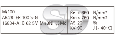 Hilo sólido de baja aleación para soldadura de aceros de grano fino y alta resistencia a la tracción. El metal depositado es resistente a la fisuración. Límite elástico de 690N/mm2. Está disponible en medidas de 1,0mm y 1,2mm.