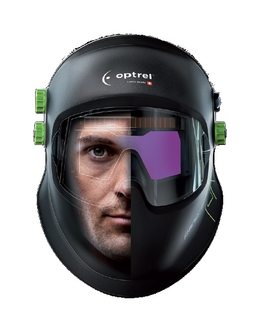 Pantalla de soldar totalmente automática, con campo de visión extra largo: el recorte nasal flota por encima de la nariz para posicionar el filtro de oscurecimiento más cerca de los ojos.