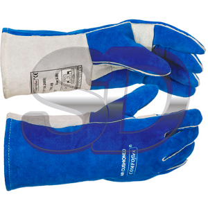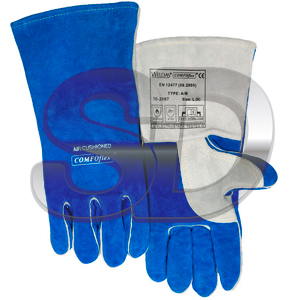 PAR GUANTE SOLDADOR AZUL SERRAJE VACUNO PULGAR REFORZADO COMFOFLEX 35 CM TIPO WIDE BODY