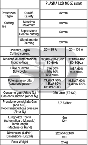 El generador trifásico de inverter para el corte de los metales por plasma de aire comprimido, modelo PLASMA 100-50 INVERTER, se caracteriza por sus dimensiones y peso limitados, la selección automática de la tensión de alimentación en el intervalo: 3×208/220/230V y 3×400/440V, su facilidad de empleo y una excelente calidad y velocidad de corte. Es adecuado para aplicaciones en la producción industrial y artesanal, sea en automático como en manual. Una interfaz CNC opcional permite una fácil integración con los pantógrafos.