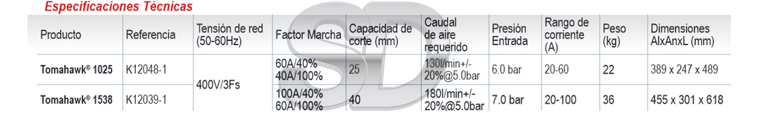 • Prestaciones (P) – Usando una corriente de aire circular a muy alta velocidad y el diseño innovador del electro/tobera favorece una mejor concentración del arco del plasma.